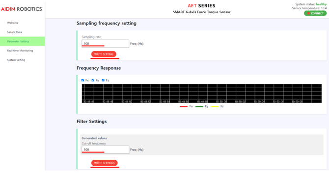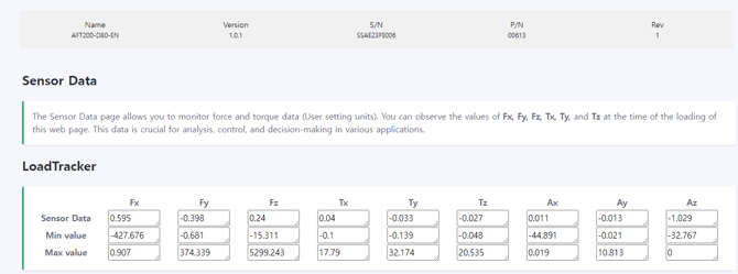 이 페이지에서는 AFT200-D80-EN 센서의 실시간 힘/토크(F/T) 데이터를 확인할 수 있습니다.