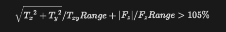 - Fz 축과 Txy 축에서 사용되는 보정 범위의 총 비율이 105%를 초과하는 경우. 해당 내용은 아래의 Fz, Txy 계산식을 참조하십시오.