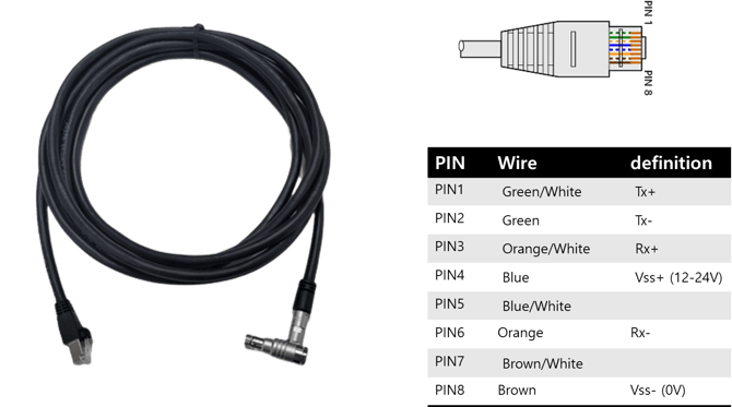 이더넷(EtherNET) 장치는 POE 인젝터와 1224V AC/DB 전원 공급장치와 함께 제공됩니다. 센서는 802.3af Mode A 프로토콜을 준수하지만, 전원은 Cat5e 이더넷 케이블 내 사용하지 않은 선을 통해서만 공급됩니다. 센서 케이블에 전압을 과도하게 주지 마십시오. 사용자는 센서 케이블을 인젝터의 ‘POE’ 표시가 있는 포트에 연결해야 합니다. 802.3af Mode A와 호환되며 1224V 전원 공급이 가능한 다른 POE 인젝터도 사용할 수 있습니다.