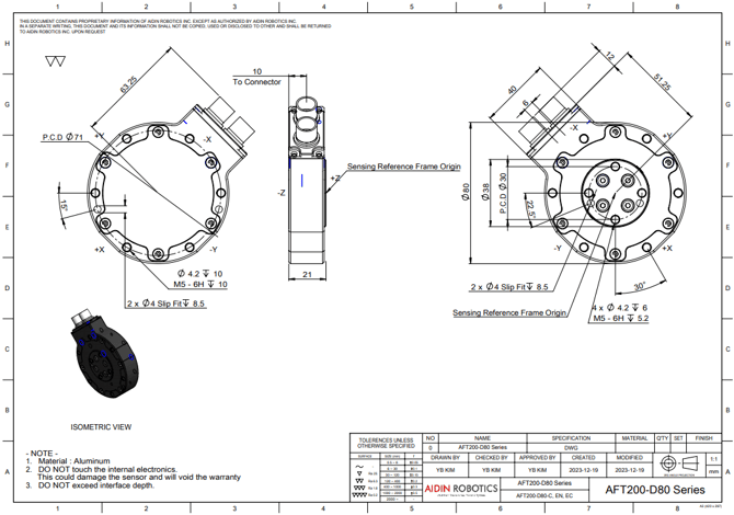 이 매뉴얼에는 AIDIN ROBOTICS AFT200-D80 센서를 올바르게 사용하기 위한 필수 정보가 포함되어 있습니다.