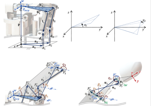- q1: -13° – 45° (thumb), -45° – 45° (idx./mid./rig./lit.)